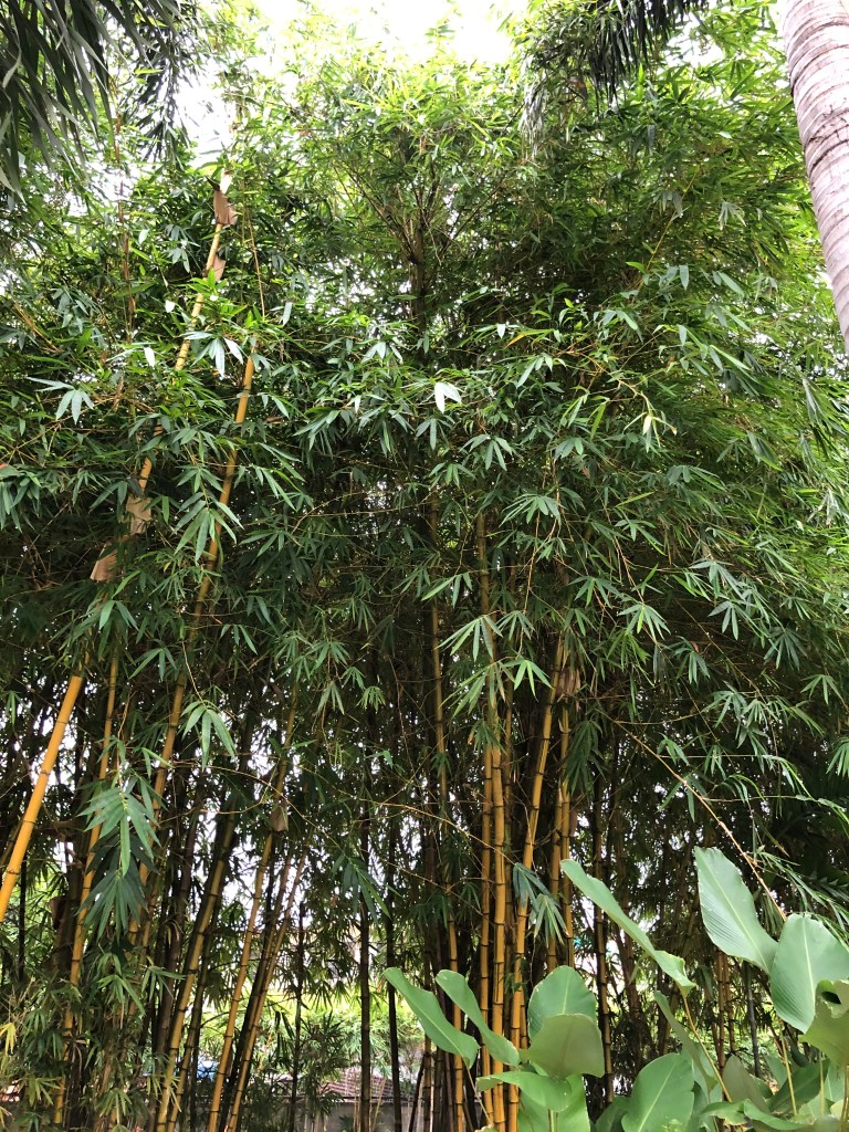 I see the afternoon sun peeking through the bamboo leaves